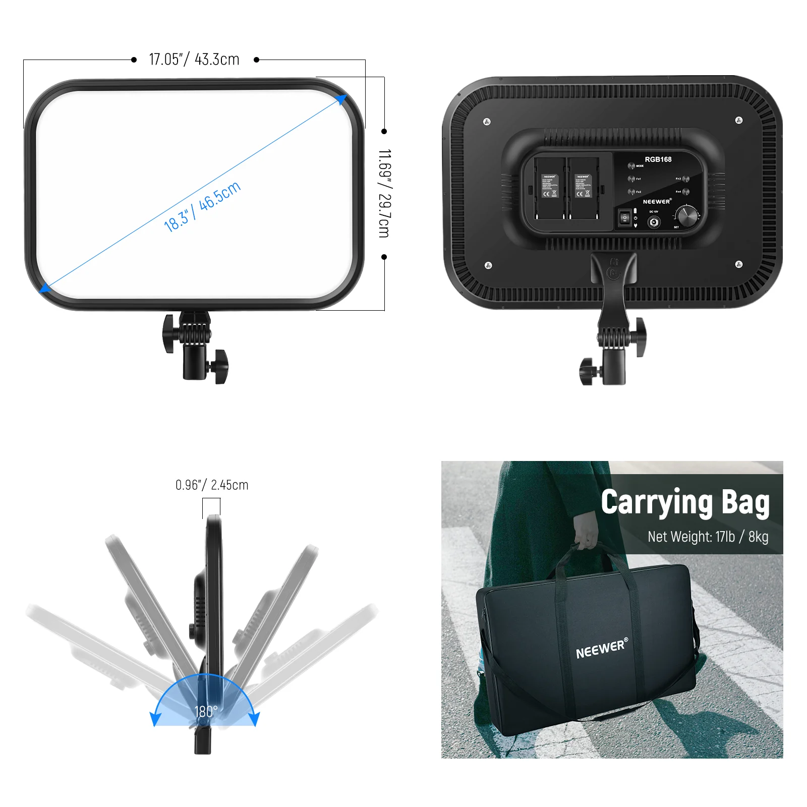 NEEWER RGB168 18.3 Inch LED Panel Video Light